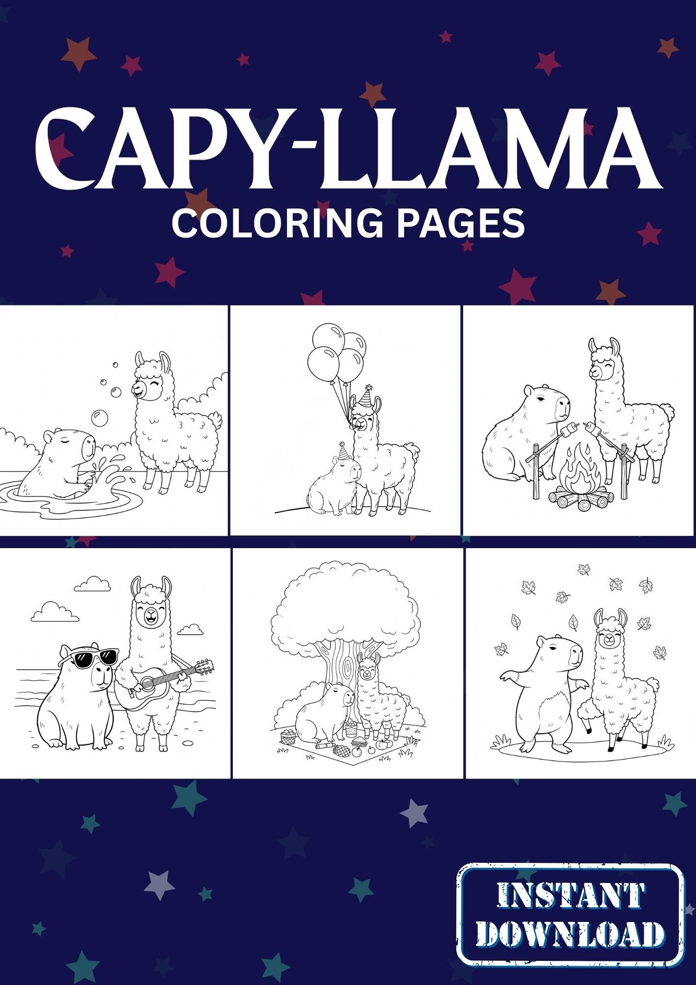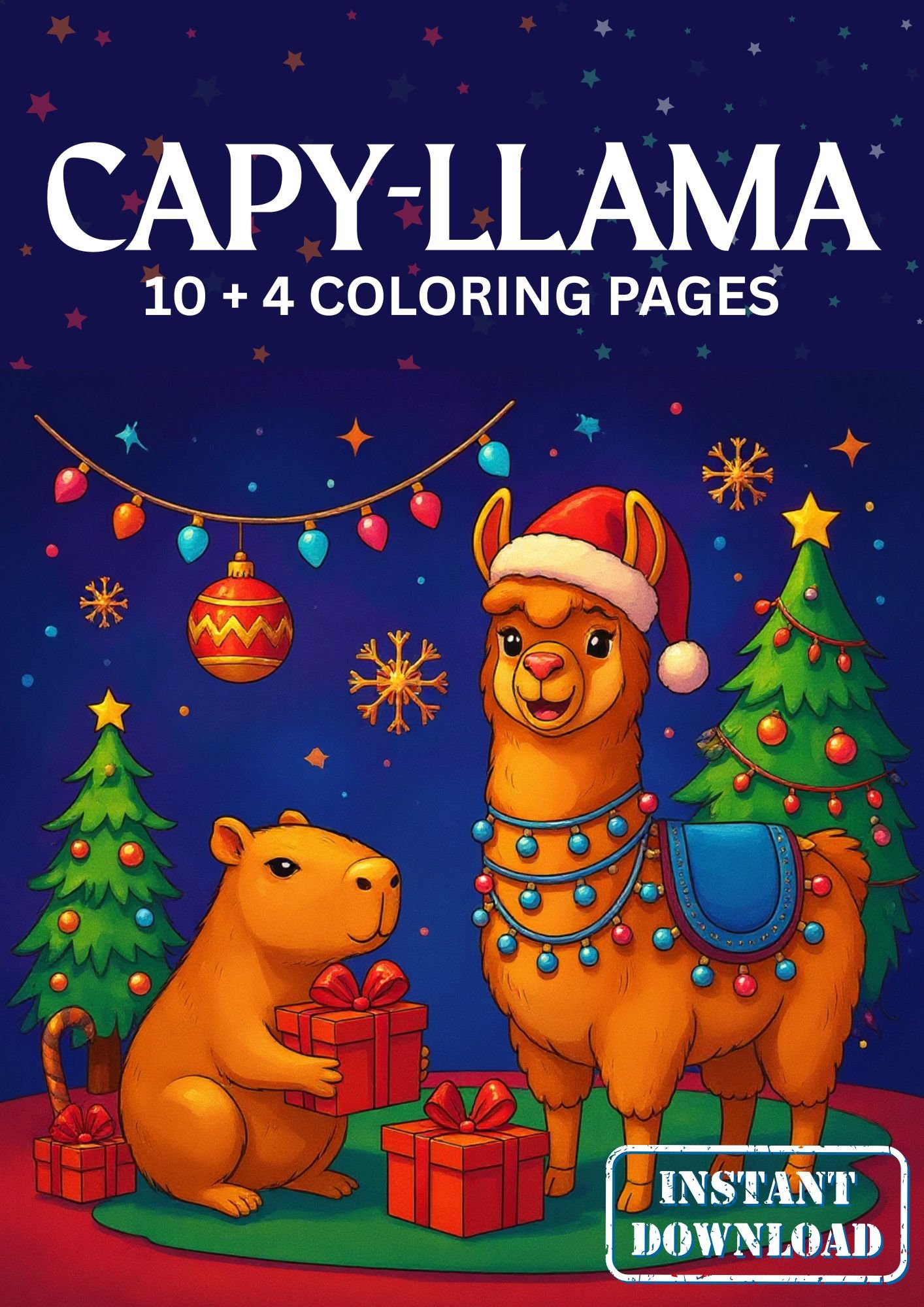 Capy-Llama Christmas Coloring Pages – 10 + 4 Cozy Animal Holiday Printables | Cute Capybara & Llama Coloring Book PDF for Kids & Adults | Easy Festive Art