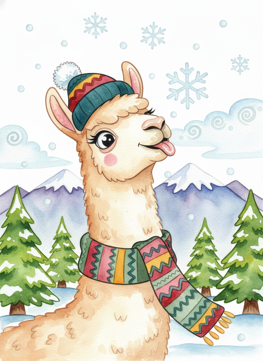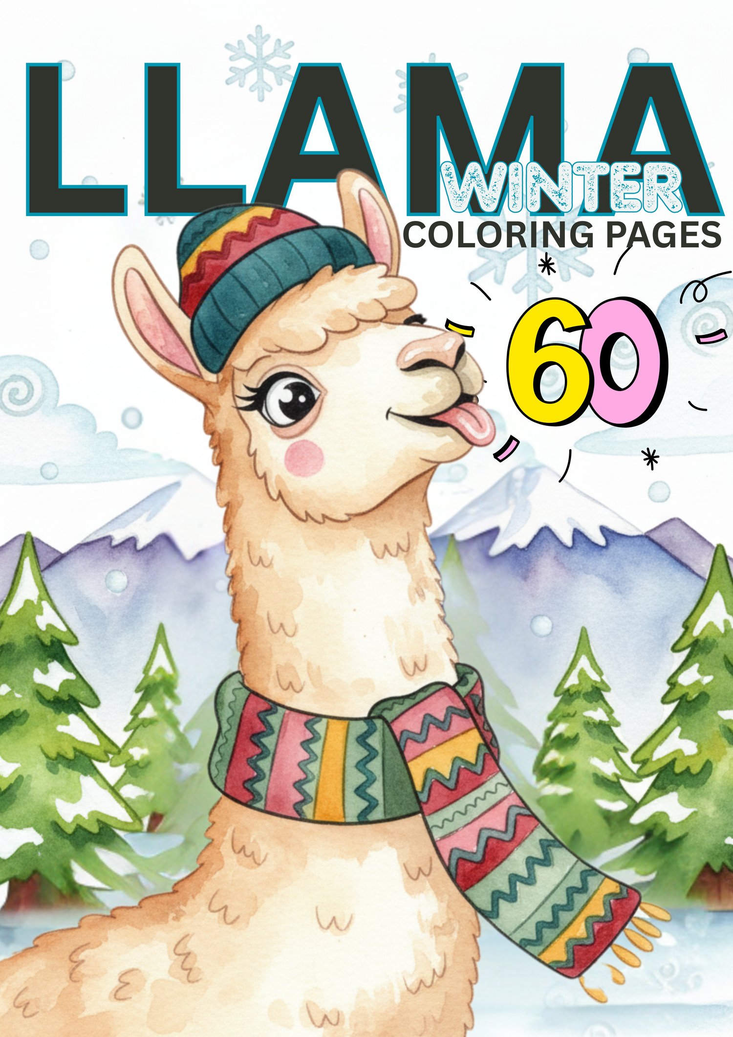 Winter Llama Coloring Pages – 60 Cute & Cozy Llama Designs • Kids, Toddlers, Teens & Adults • Printable Coloring Book • Instant Download (PDF)