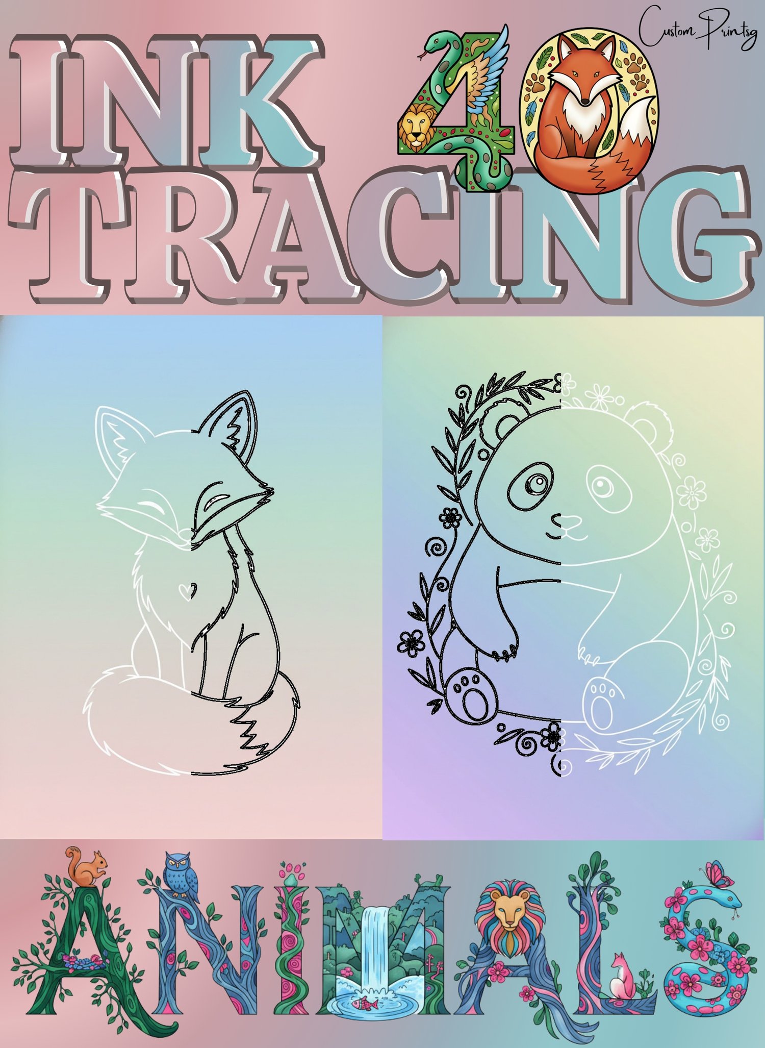 Ink Tracing Animals – 40 Cute & Relaxing Reverse Coloring Trace Pages
