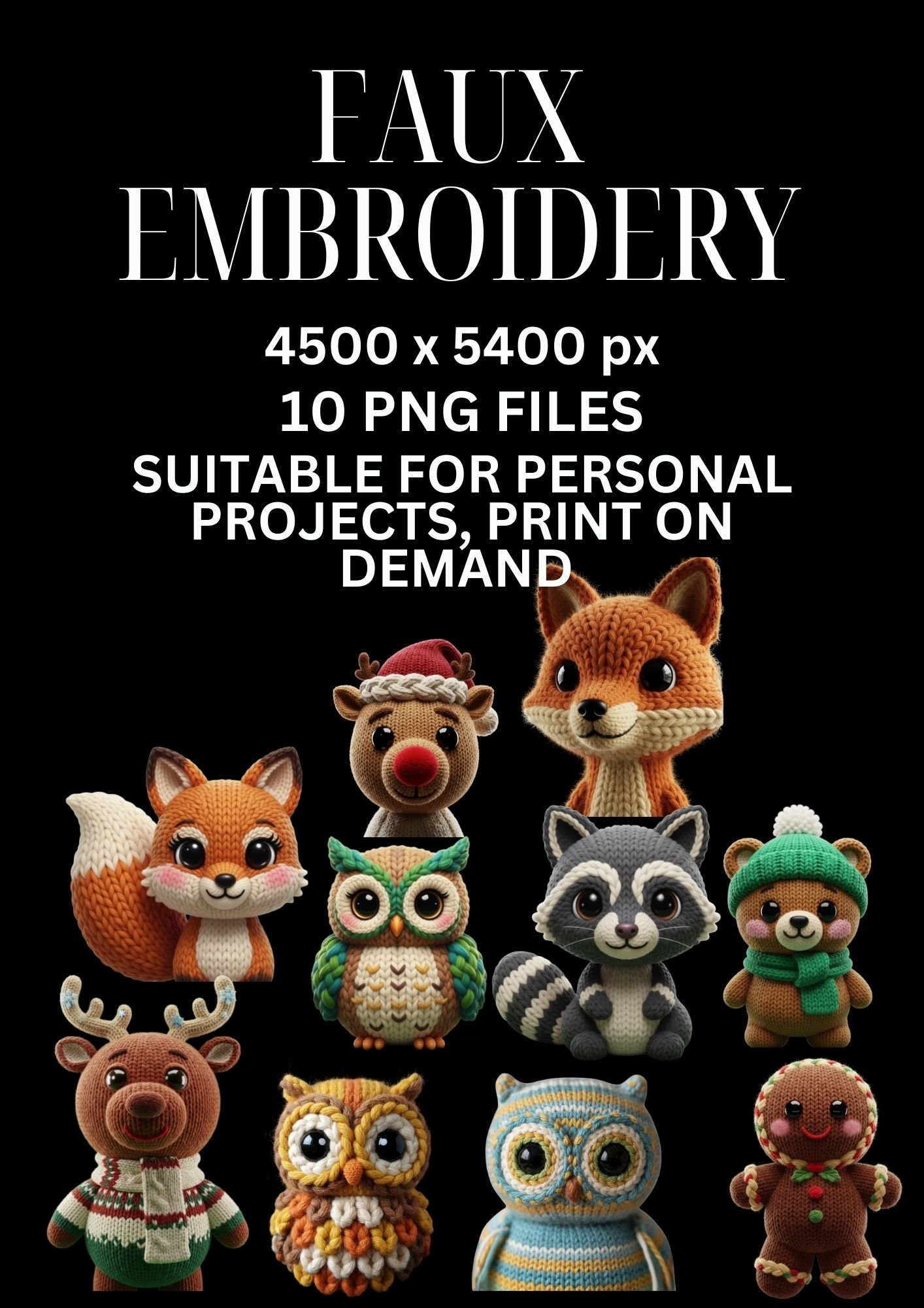 Faux Embroidery Winter Clipart for Print on Demand Scrapbook PNG Files