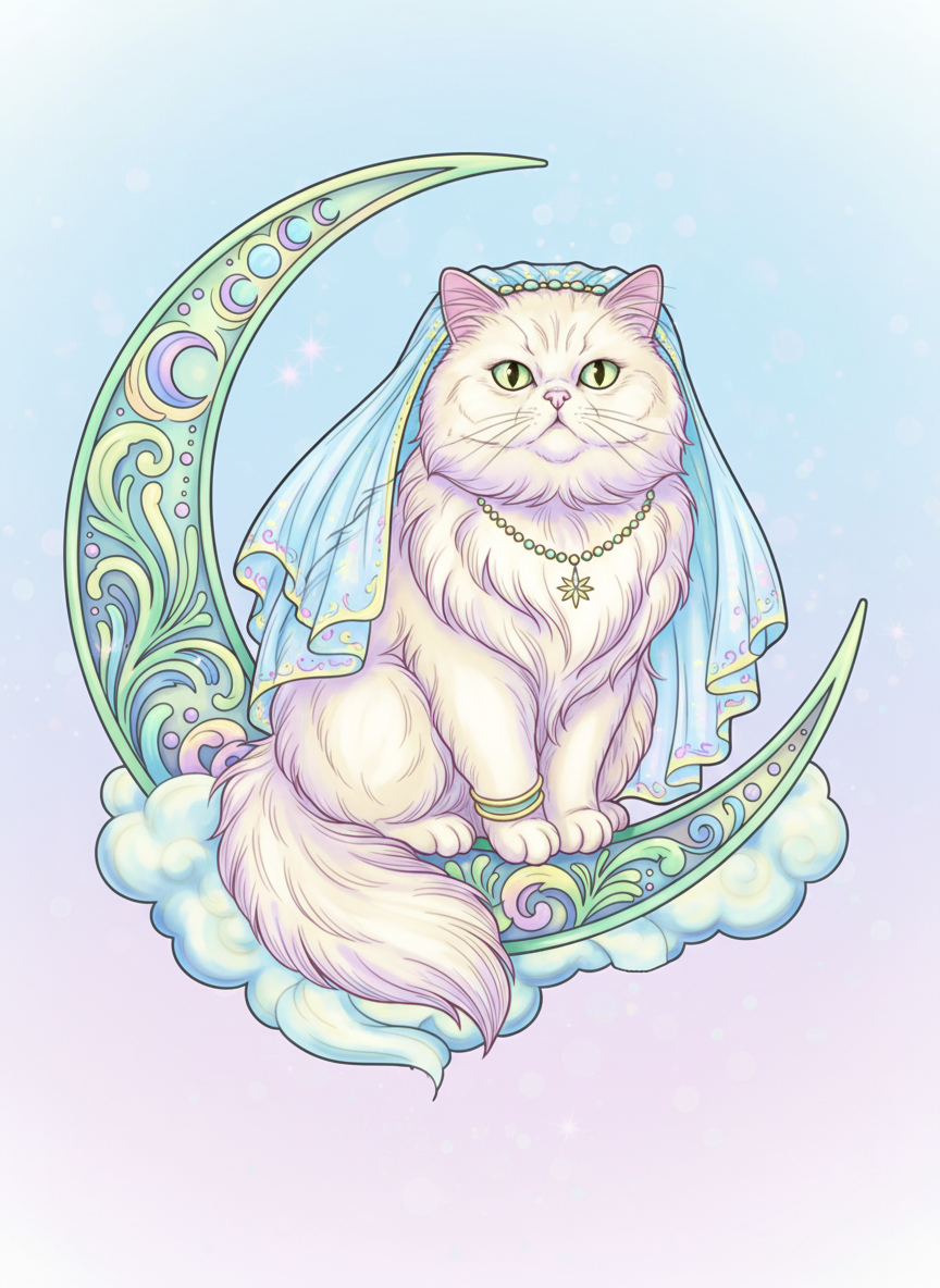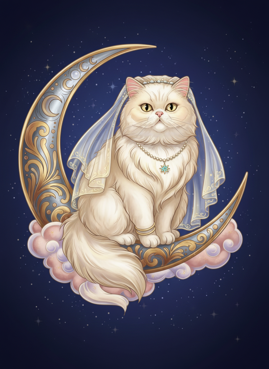 Persian Cat on Crescent Moon – Free Printable Coloring Page | Instant PDF Download