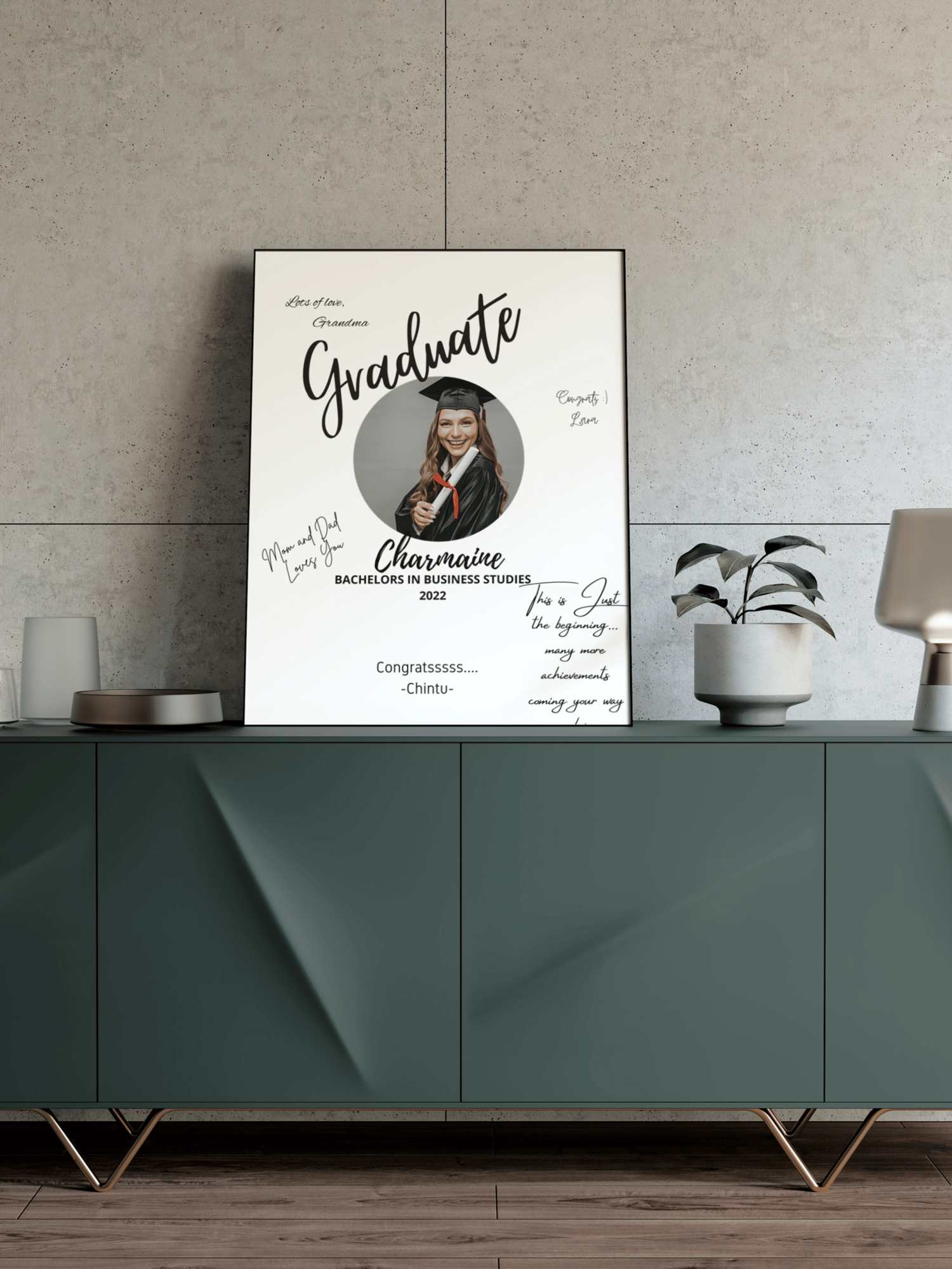 These are customizable Graduation Signature Board Canva Templates. This means that you will be able to easily add in your own information, photos, and can change the fonts, colors, etc. to suit your purposes. Please note that the text "Graduate" is an image file and is not editable. You can always delete this and add a text field if you want to write the same in another font.