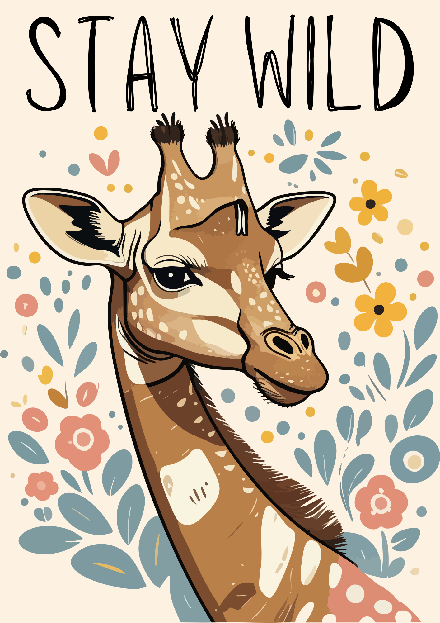 Giraffe Wall Art POD Printable Set – Stay Wild, Dream Big, Stay Curious – Minimalist Jungle Quote Decor